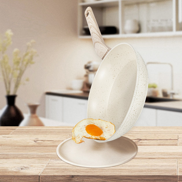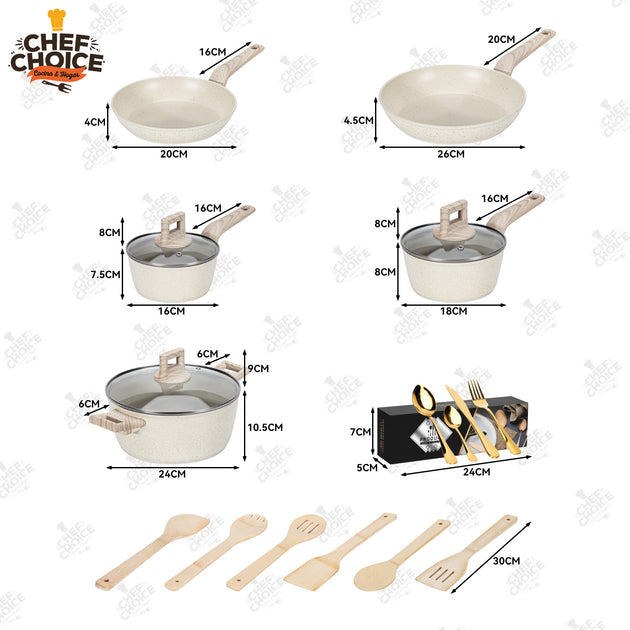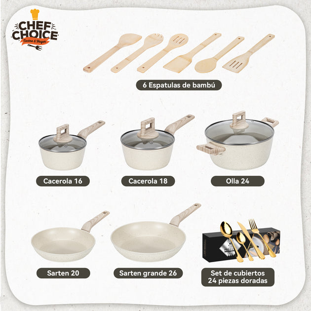 Bateria De Cocina Aluminio 38 Pcs Antiadherente Granito Blanco Crema