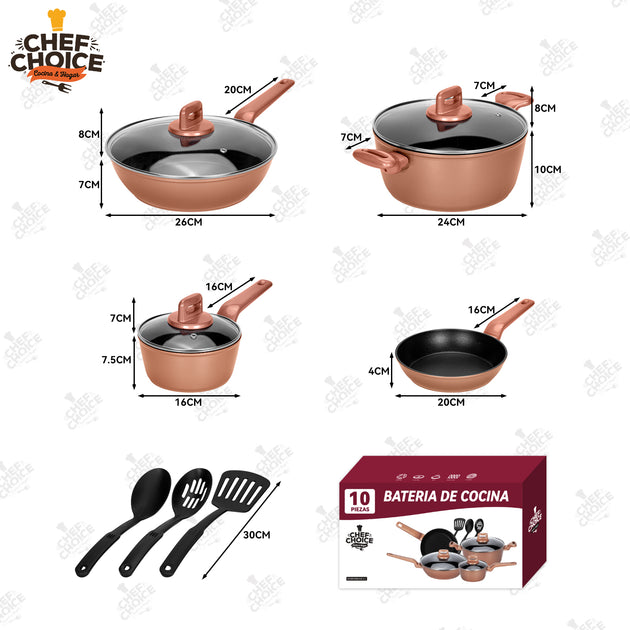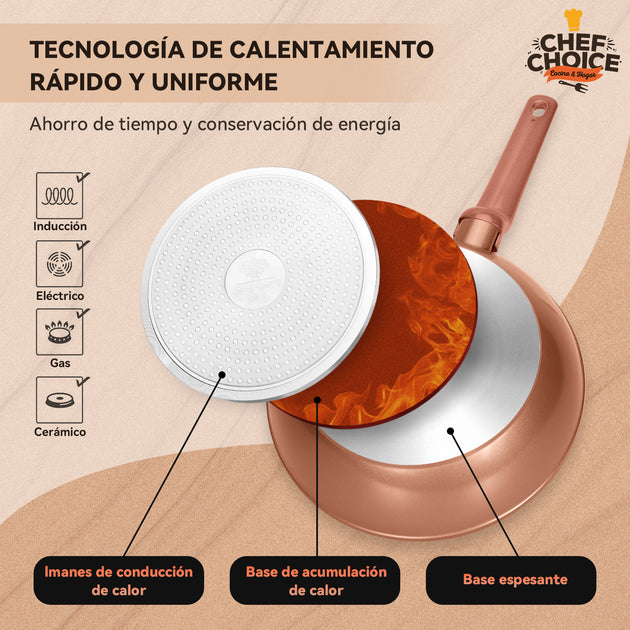 Bateria Cocina Antiadherente Aluminio Ceramica 10 Piezas Wok Oro Rosa