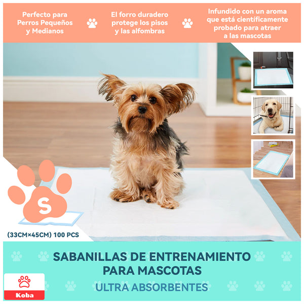 100 Pañales Sabanillas Entrenamiento Perro Talla S 33x45cm