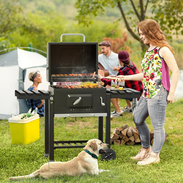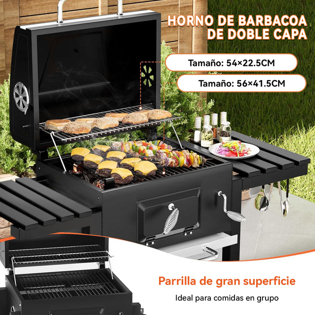 Parrilla a Carbón con Ruedas y 2 Bandejas laterales 135x47,5x106cm