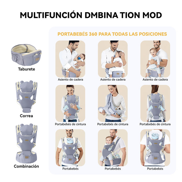 Mochila Portabebés Ergonómica 3 En 1 Con Capucha Sillín
