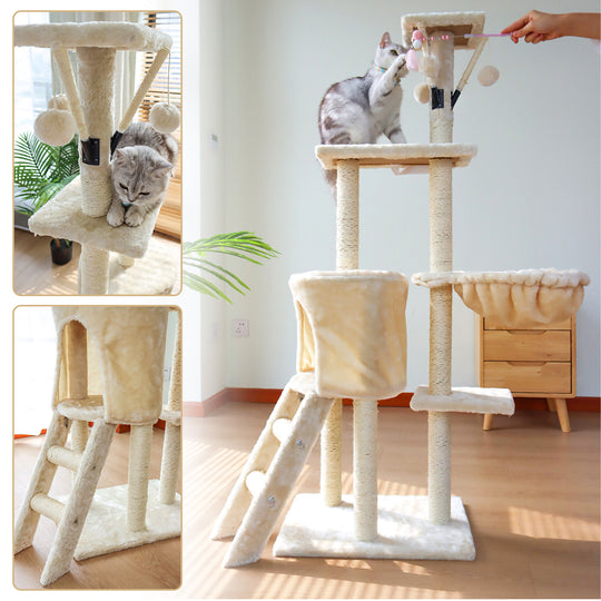 Descubre la torre rascador para gatos de 5 niveles y 138 cm de altura, diseñada con casa, juguete, rampa y cama, ideal para cualquier espacio y estilo. Fabricada en madera hipoalergénica y resistente, ofrece a tu...Precio regular $69.990Precio regular $69.990 -