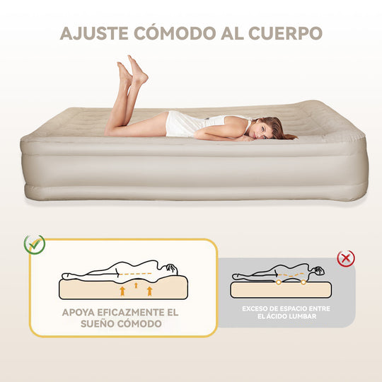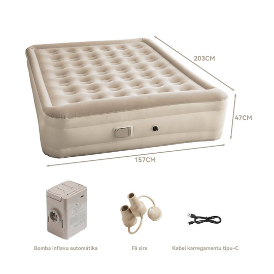Colchón Inflable Eléctrico 2 Plazas Queen Bomba Recargable