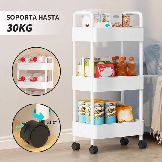 Carrito Carro Organizador Ruedas Multiuso Chef Choice 3 Niveles Color Blanco
