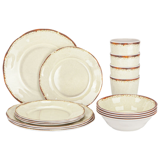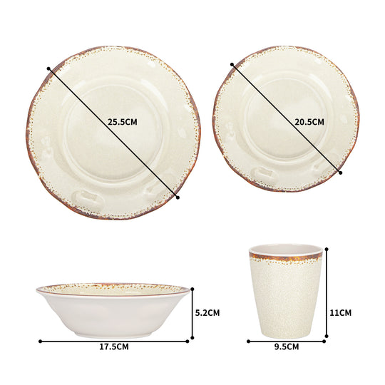 Juego 16 Piezas De Vajilla Melamina Platos Vasos Color Crema Chef Choice