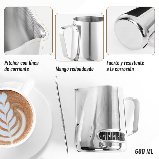 Jarra Espuma De Leche Con Termometro Texturizar 21oz/600ml Color Plateado Chef Choice