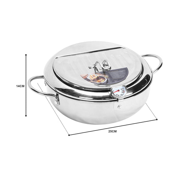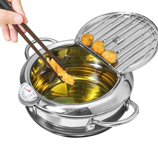 Olla Freidora Japonesa De Acero Inoxidable Con Termómetro Color Plateado