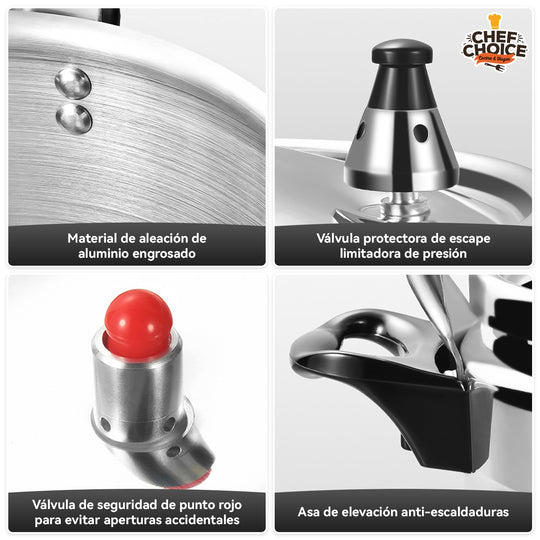 Olla A Presión Aluminio 8 Litros Con Tapa Innovadora Chef Choice