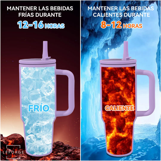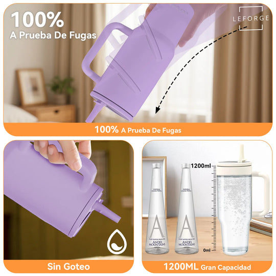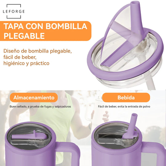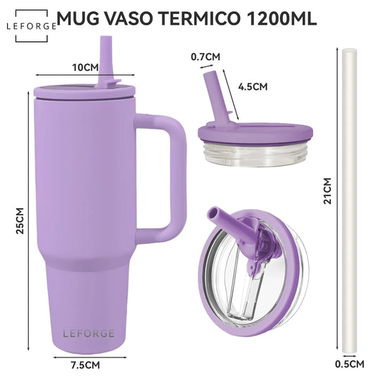 Mug Vaso Termico 1200ml Con Bombilla Plegable Color Lila
