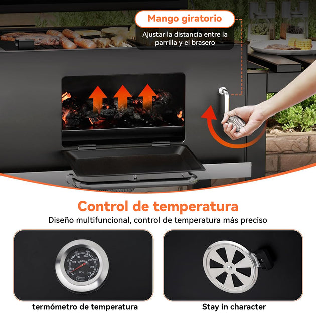 Parrilla a Carbón con Ruedas y 2 Bandejas laterales 135x47,5x106cm
