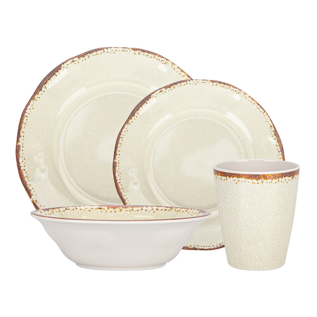 Juego 16 Piezas De Vajilla Melamina Platos Vasos Color Crema Chef Choice
