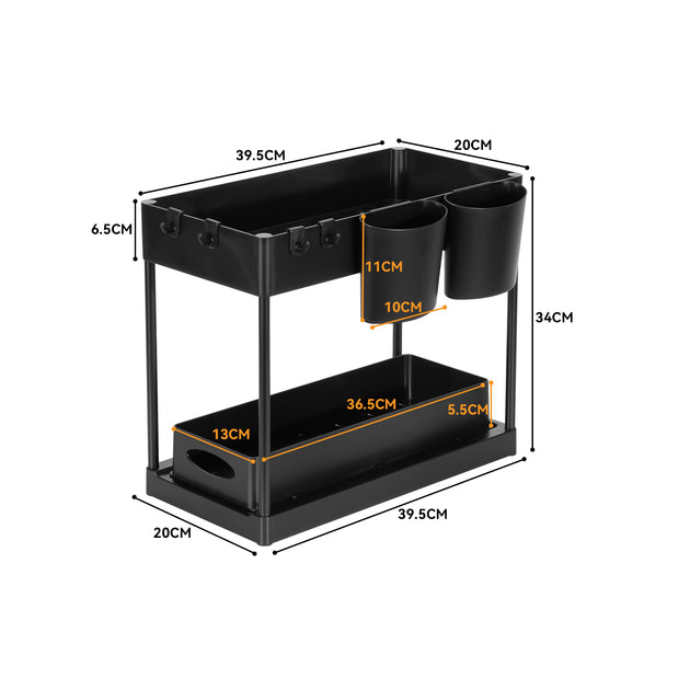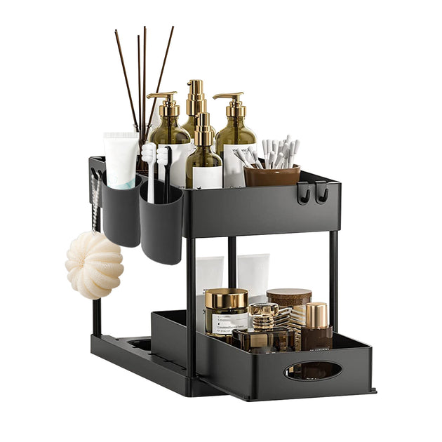 Estante Organizador de Almacenamiento 2 Niveles Con Cajones Repisa Para Baño Cocina Color Negro