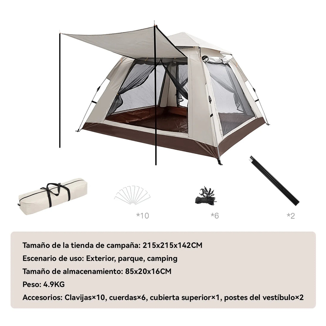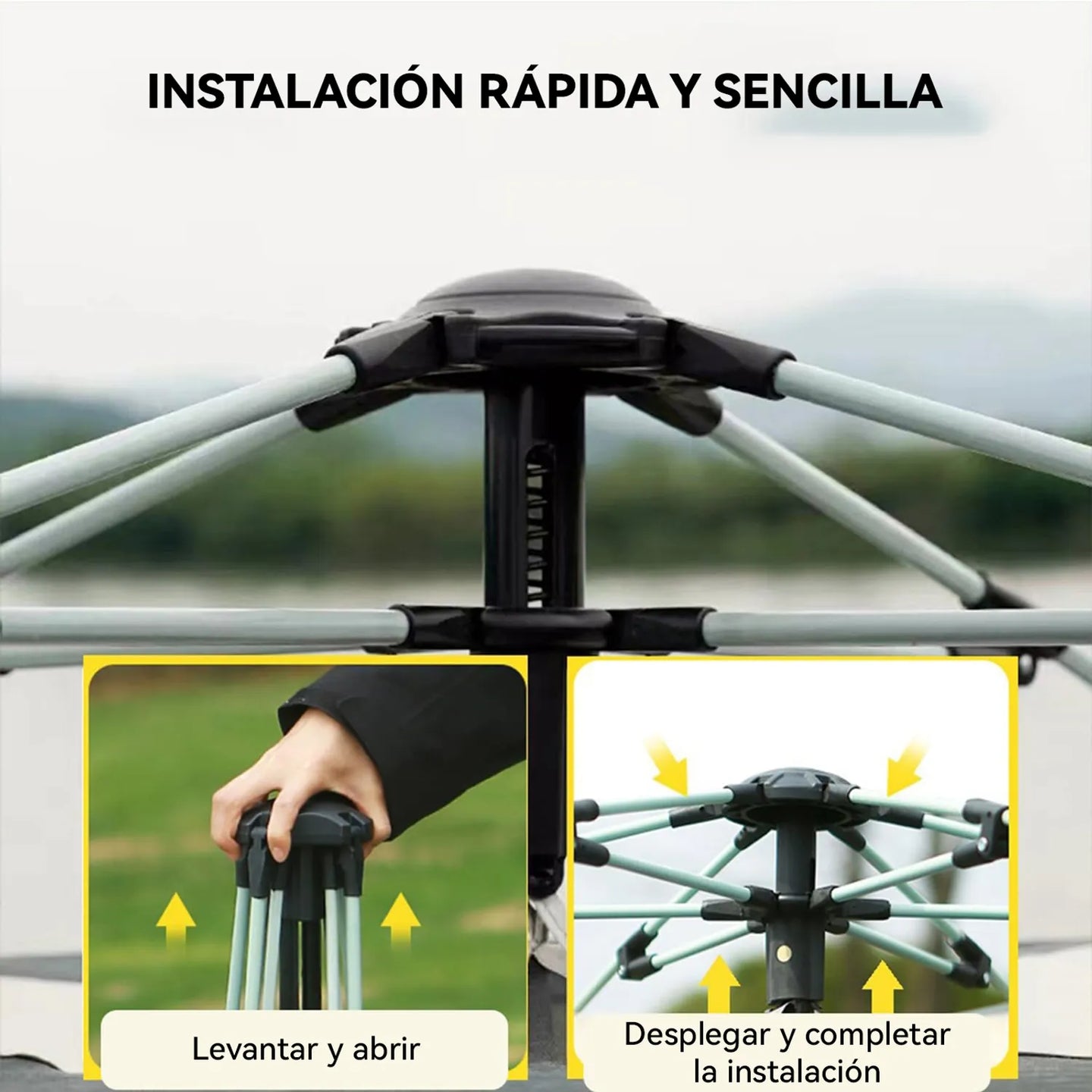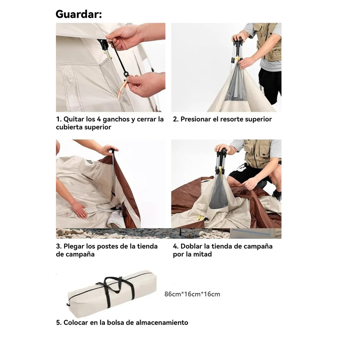 - Fácil de Montar: La tienda prensable se monta rápidamente con solo levantar la parte superior de la tienda.