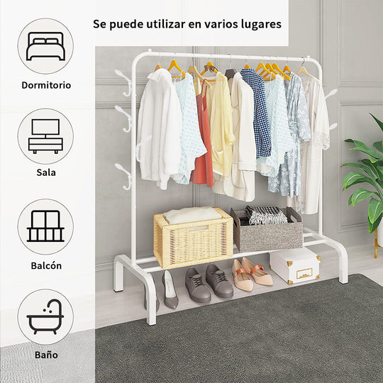 Perchero Organizador Colgante de Ropa Doble Barra Tendedero Metálico Colgador Ropa Vidita Color Blanco
