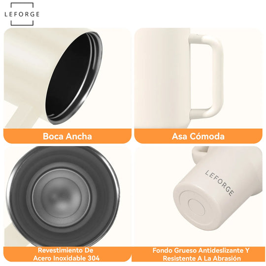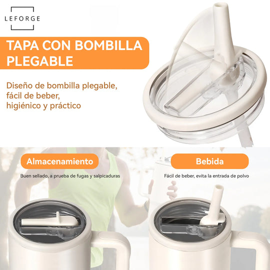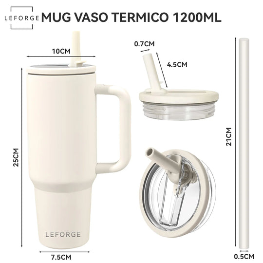 Mug Vaso Termico 1200ml Con Bombilla Plegable Color Blanco Crema