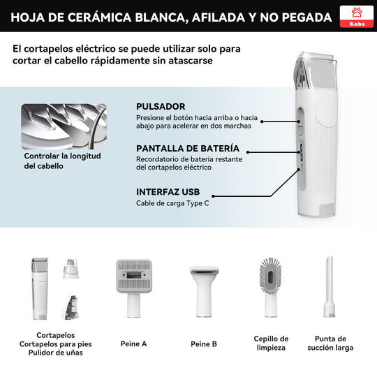 Kit De Aseo 7 En 1 Maquina Cortapelo Aspiradora Perros Gatos