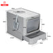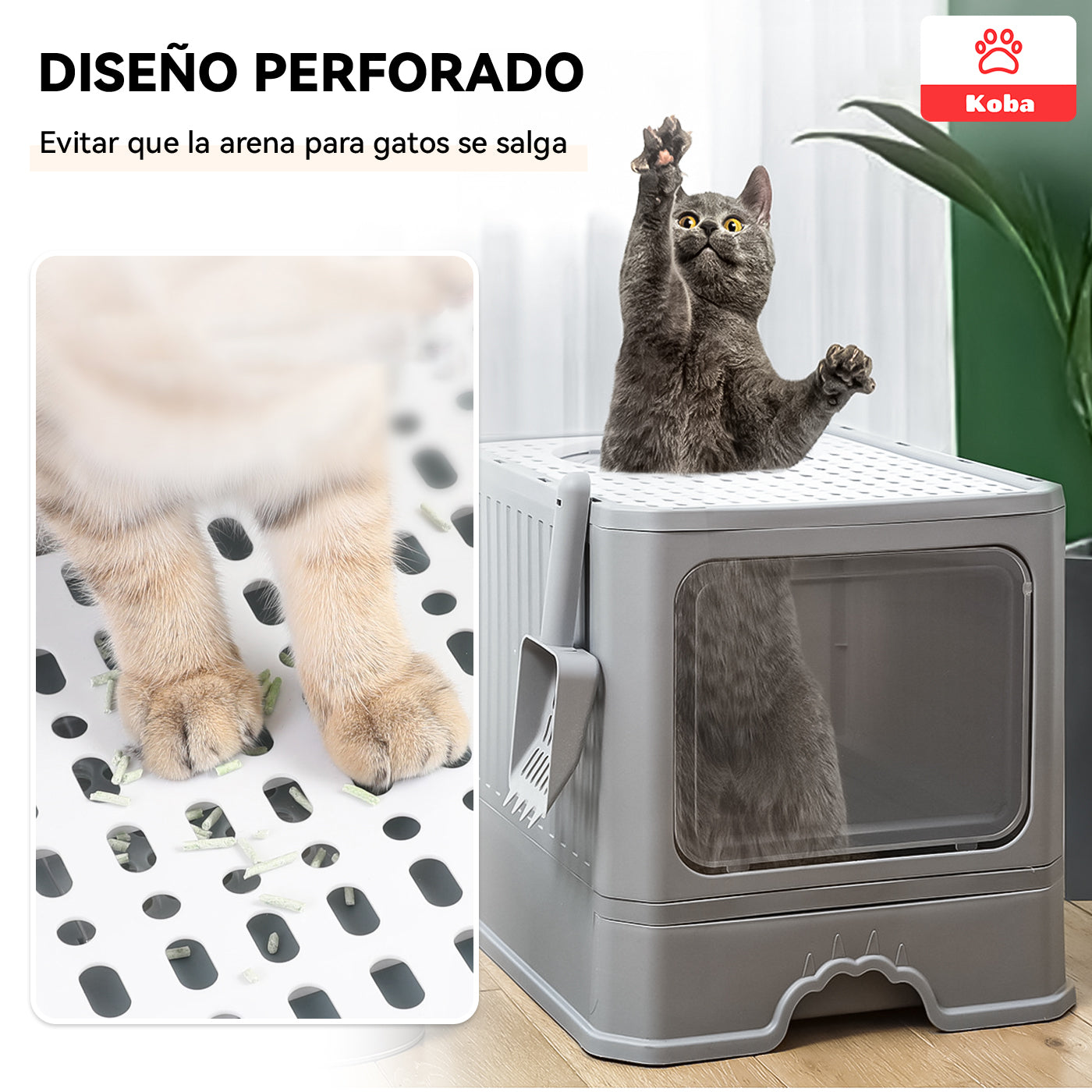 Esta caja de arena plegable para gatos está fabricada con plástico PP resistente y duradero, capaz de soportar el peso de tu mascota. Incluye una pala de limpieza y un desodorante para mantener el espacio fresco. Con un tamaño de 50x40x40 cm, ofrece un amplio espacio privado donde tu gato puede moverse y enterrar sus desechos cómodamente. Su diseño cerrado evita que la arena se esparza, mientras que la entrada superior y el pedal ayudan a eliminar la arena de las patas antes de salir. La puerta frontal transparente con cierre automático brinda seguridad y tranquilidad a tu gato.