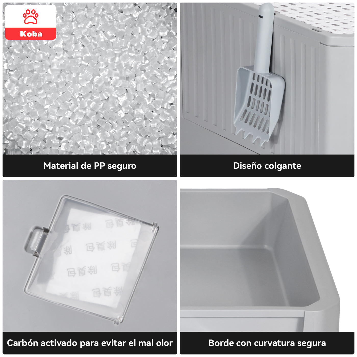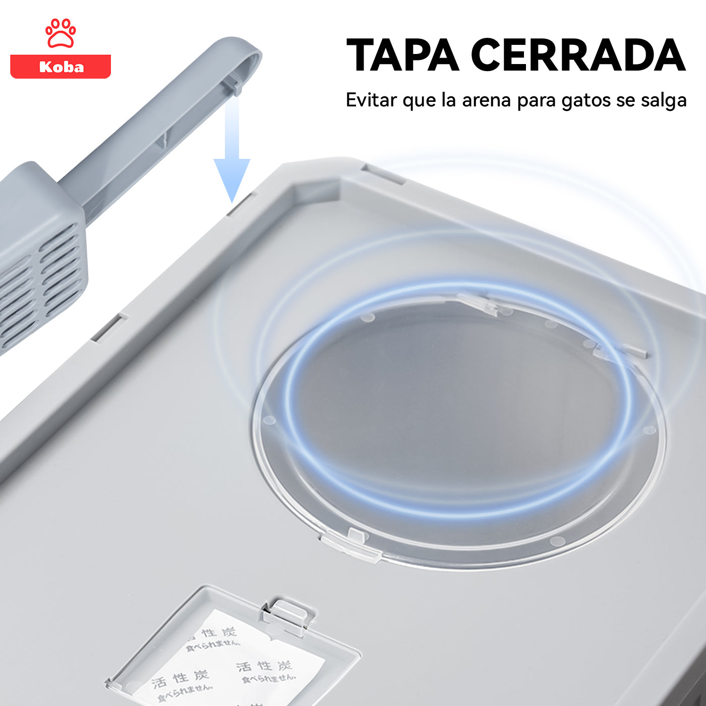 Compré este arenero porque el que tenía antes dejaba salir mucho olor. Con la tapa y el filtro, el manejo de olores ha mejorado considerablemente. La puerta es de fácil acceso para mi gato.