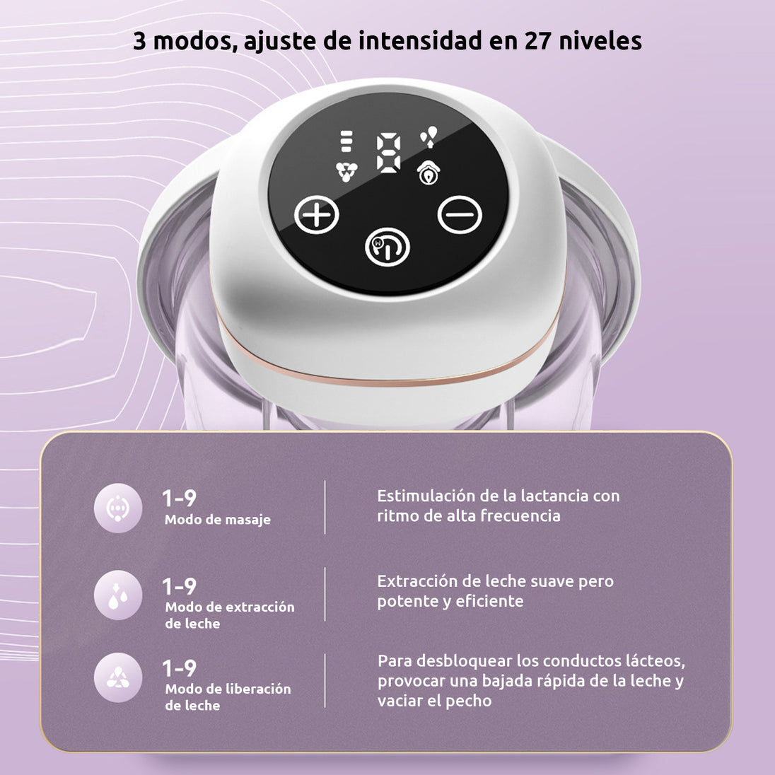 El extractor de leche portátil manos libres de ANIKIDS ofrece a las mamás la libertad y comodidad que necesitan. Este sacaleche eléctrico inalámbrico cuenta con 3 modos y 27 niveles de intensidad para una extracción rápida y eficaz. Su modo masaje estimula la producción con alta frecuencia, el modo succión garantiza una extracción suave pero potente, y el modo bajada desbloquea conductos para facilitar el flujo completo de leche. Ideal para madres ocupadas que buscan eficiencia y confort en cada uso.