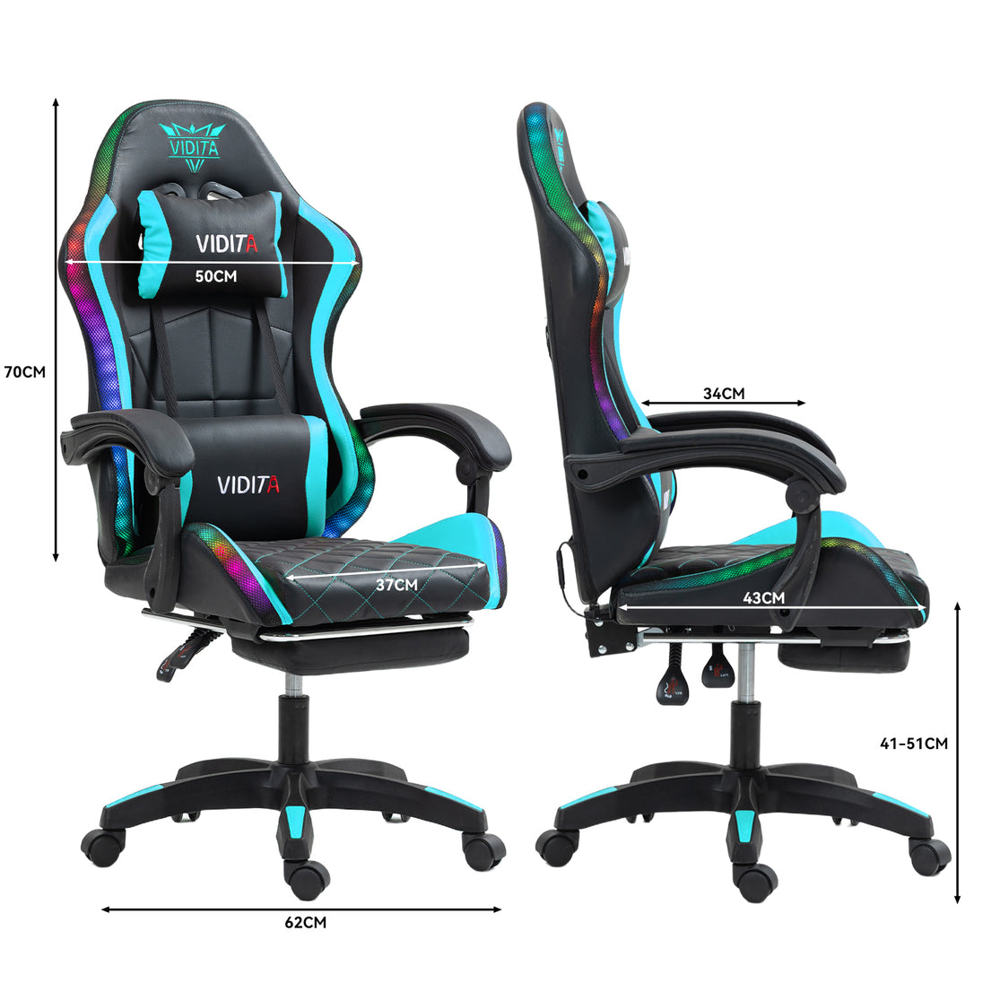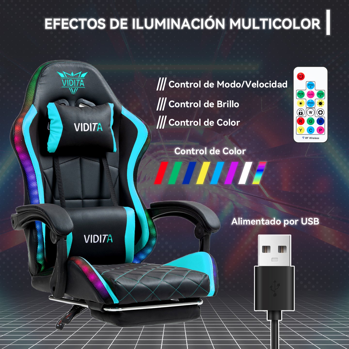 Silla Gamer Rgb Knight800 Reclinable Con Masajeasdor Reposapiés Vidita Silla Gaming PC Videojuego Cuero Sintético Celeste